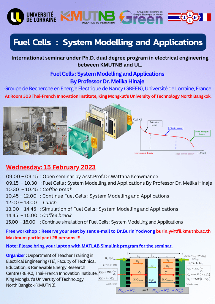 We would be pleased to invite everyone who is interested in Fuel cells technology to attend the International seminar on the Topic of Fuel cells: System Modelling and Applications by Professor Dr. Melika Hinaje, Groupe de Recherche en Energie Electrique de Nancy (GREEN), Université de Lorraine, France.
